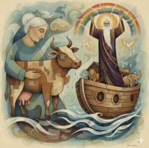 Şu hekaýadan adam näme düşünmeli? Elbetde her kim öz ýüregine görä bir zatlar düşünjek bolar, meň ýüregim bolsa şeýleräk netijeleri çykarýar: –Meň özüm, şol garryja mamaň sygry, sebäbi dünýäni suw alsada, palçyk meň dyzymdan ýokary geçenok. Daş töwerekde Beýik Allah öz işlerini alyp barýar, şäherleri ýumyrýar, ýurtlary gana gark edýär, ýöne maňa degenok. Men şol rowaýatdaky sygyr ýaly, günde otlamaga gidän, yzyma dolanýan we palçyk meň dyzymdan ýokary geçenok. Daş töwerekde bolup geçýän syýasy we ykdysady siltilmeler hem maňa täsir edenok. Allah öz ýaradan düýäsi bilen näme etse şony etsin, Oň Özi bizden gowy bilýär, iň esasy zat ol maňa degenok. Tutuş dünýäni suwa ýa-da oda gark edip, Allah degmejek adamsyna degmän bilýär. Men näme üçin Beýik Allahyň edýän işine gynanmaly, ýa-da Ony taňkytlamaly? Iň esasy zat ol maňa degenok dämi, maňa şol hem ýeterlik. Belki siz aýdarsynyz, sen awtor diňe özüňi bilýäň, we sende hiç hili duýgudaşlyk ýok diýip? Ýöne siziň ähliňiz irde giçde bir zada göz ýetiresiňiz: –Siziň ähliňiz hem edil şol garryja mamaň sygyry ýaly, we Allah tutuş dünýäni suwa gark edende-de, palçyk siziň dyzynyzdan ýokary geçmedi, ol sizi ähli nogsanlyklardan gorap saklady.